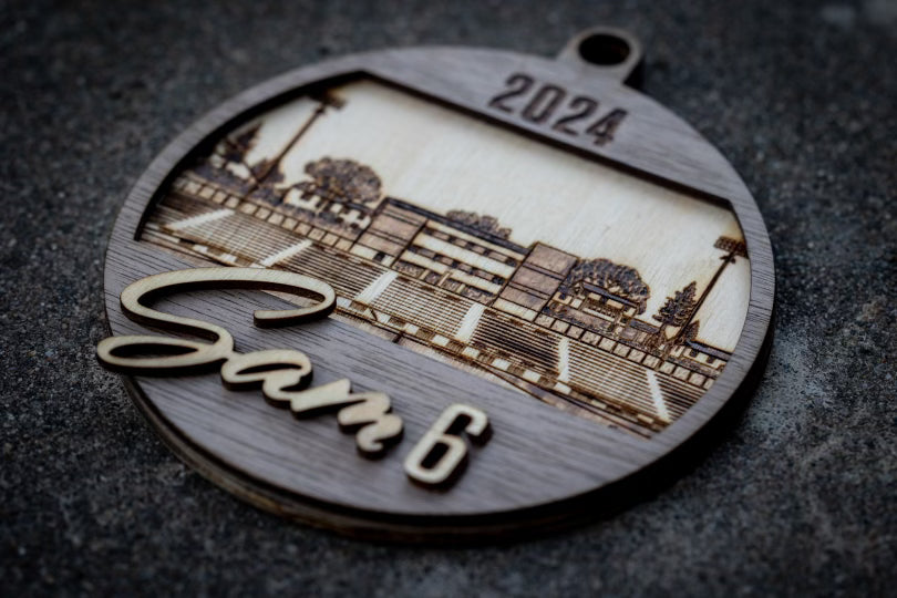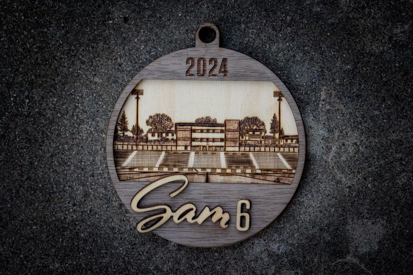 Celebrate the 2024 Helias Catholic Football season with this laser cut and hand embelished Christmas ornament. Ornament features Ray Hentges Stadium and can be personalized with your player's name and/or number.